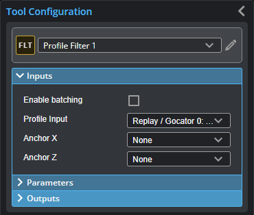 The Profile Filter tool provides processing filters that you can apply to a uniform profile (not point cloud profiles), letting you process scan data to get more repeatable measurements. You can enable up to seven of the filters at once, in any order. Filters in the tool are chained together. Any Profile tool can use the resulting filtered profile as input.