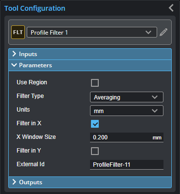 The Filter tool provides no measurements or decisions. It only outputs processed profile data.