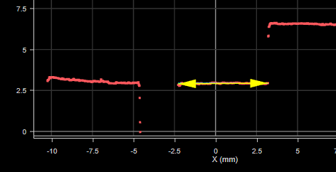 When the target is sitting on the surface, the base is lower than the strip (as shown above). Alternatively for a groove the base is above the strip surface. The base could be missing when the target is hanging in the air or the surface holding the target falls outside the sensor's active area. You can control the base type in the measurement panel.