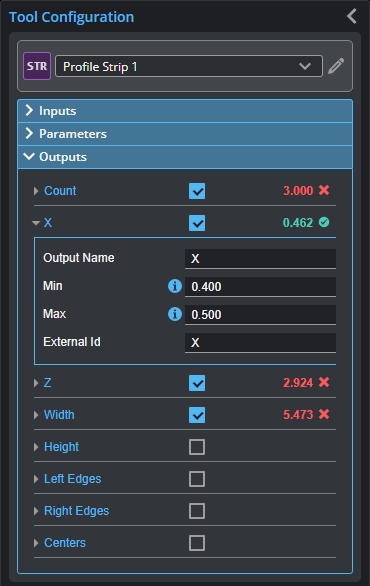 The Strip tool returns various measurements related to a strip, such as its X and Z positions, width, and height.