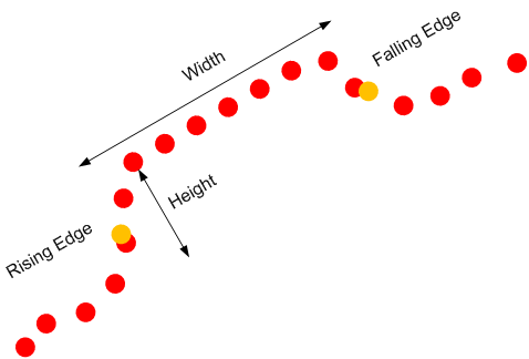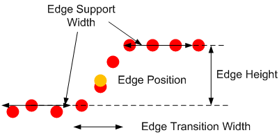The Edge Support Width parameter defines the width of the region around the edges from which the data is used to measure the step change. To improve noise immunity, the height level of the Edge Support Width parameter is calculated by averaging the data within the region.