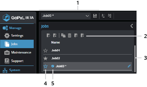 | 4 | Default job indicator | Clicking on the default job indicator ( ) sets the job as the default. |
