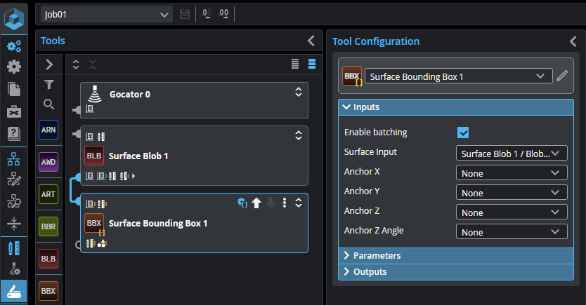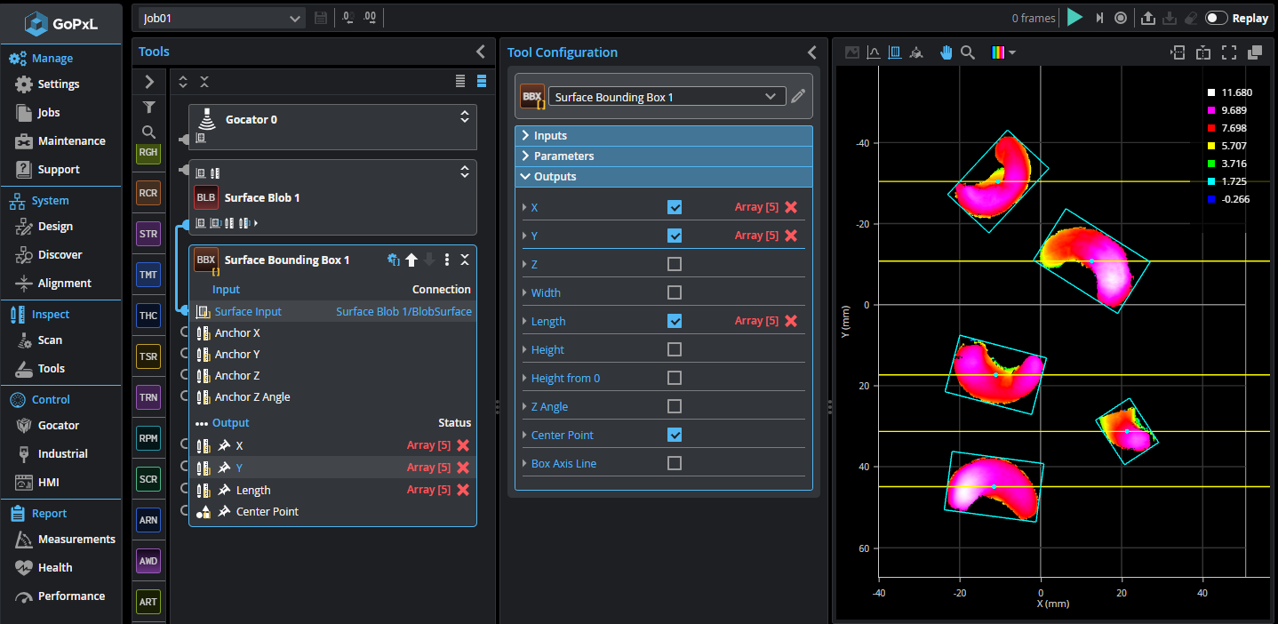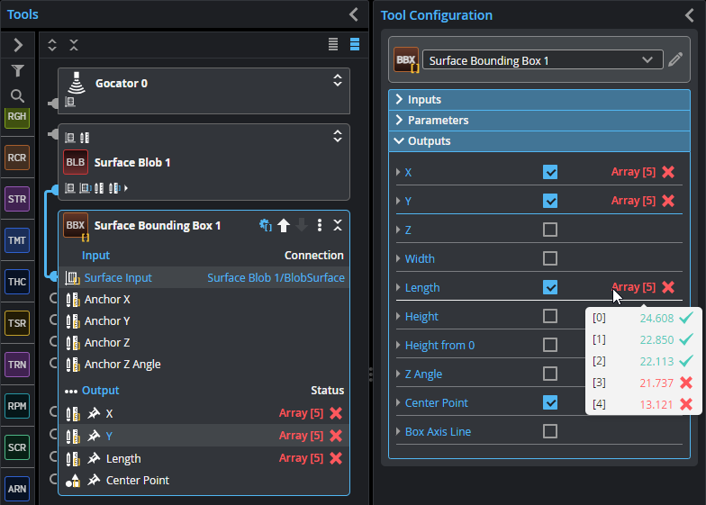 When Enable Array Output is checked, the Surface Blob tool outputs an array containing all of the blobs it identifies.