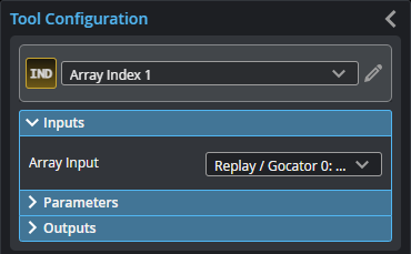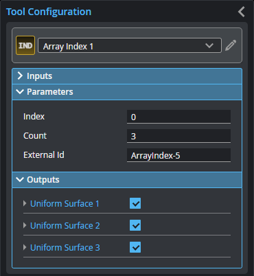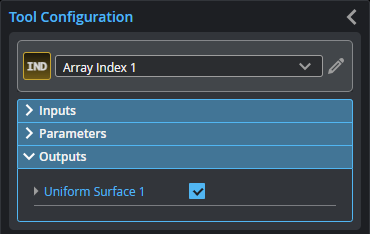 The Array Index tool extracts a single piece of data (such as a profile or a surface) from the array it takes as input at the position (the index) you specify.