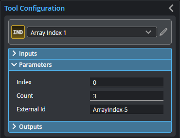 The position (the index) in the array at which the tool extracts and outputs. If Count is set to a value greater than 1, the index is the starting point for array element outputs. |