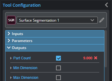 Determines the number of parts the tool outputs as measurements, features (center points of parts), and surface data. Currently limited to 200 parts. If Enable Array Output is checked, this parameter is hidden and all parts are output in arrays. |