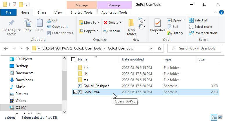 | 1. | If it isn't already running, start the Windows version of GoPxL. |