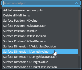 Lists the available outputs. Click an output in the drop-down to add it to the outputs GoPxL will send to an HMI.