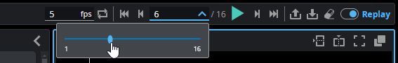 These controls let you set the number of frames per second (fps) during playback, and also whether GoPxL repeats frames, by toggling the Repeat frames button ( |