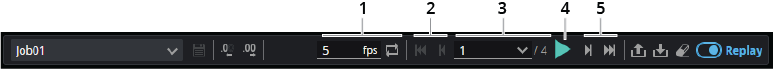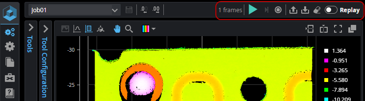 | 1 | Playback rate and repeating frames | When "Repeat frames" ( ) is enabled, scan data is played back in a loop. This is useful when inspecting data or configuring tools using recorded data, and also for demos. |