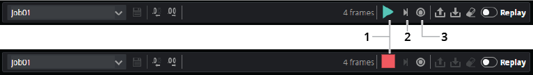 The global toolbar with Replay disabled (top) and enabled (bottom)