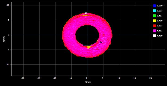 When Edge Filter is enabled, an Edge Filter expanding section is displayed that contains the settings described below. Part scans sometimes contain noise around the edges of the target. This noise is usually caused by the sensor’s light being reflected off almost vertical sides, rounded corners, etc. (The following screenshots are from a G2 sensor.)