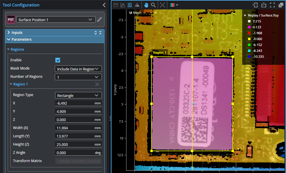 When the data viewer is in Surface / Top or Profile / Front mode (not in Perspective mode), you can quickly center all of a tool's regions in the data viewer and reset them to their default size by clicking the "Center tool regions" button (