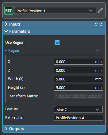 These parameters define the size, location (center of the region), and orientation of the region. Not available when Region