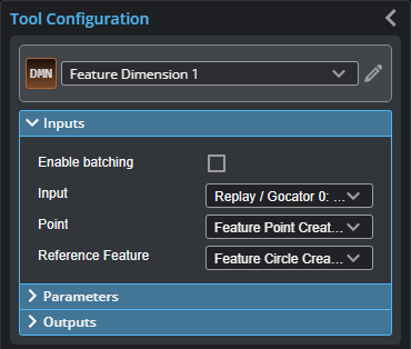 A geometric feature generated by another tool. Dimensional measurements are calculated from the reference feature to the point in the Point input. |