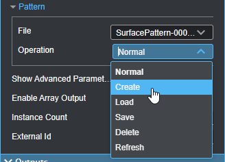Operation The operation to perform on the currently selected template in the File drop-down. One of the following: Normal: The default value after having performed another operation. Create: Creates a new template based on the current frame of scan data. Limited to the region if Use Region is enabled. Load: Loads the currently selected template. Save: Saves contour data to the currently selected template, overwriting its contour data. Delete: Deletes the currently selected template. Refresh: Refreshes the list of templates. This is useful if you have renamed a template (using the Pattern Editor or manually in the client PC's file system). |