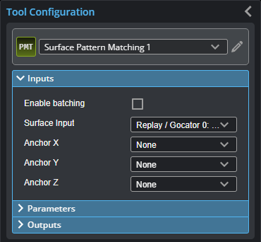 The Surface Pattern Matching tool locates parts and features by comparing 2D contours (on the XY plane) found in scan data to pattern models you have defined; note that the tool does not use height data in its algorithms. Models represent contour-based “golden parts” or “golden features.”