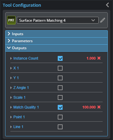Finally, the tool returns a match quality that you can use as a general conformity measure for matching instances (for example, checking for dents in a target), as well as a count of located instances.