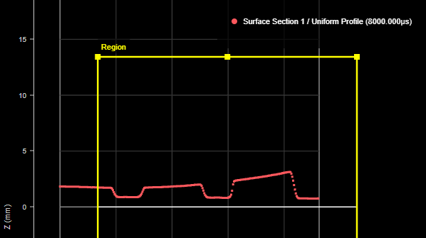 The resulting profile. The leftmost point of the profile is at the X origin. The region is positioned showing the X and Z position of the center of the region on the surface.
